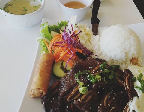 - 环境很好,样式不多,老美的菜 没想到在这里还有这么好吃的越南河粉,惊喜,比 洛杉矶的要好吃很多还可以