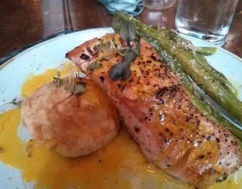 我们吃了一顿丰盛的晚餐!服务和氛围很好,座位也非常舒适。甚至我认为牛排是优秀的!我有炸薯条与我和他有芦笋。整体真的很好!
