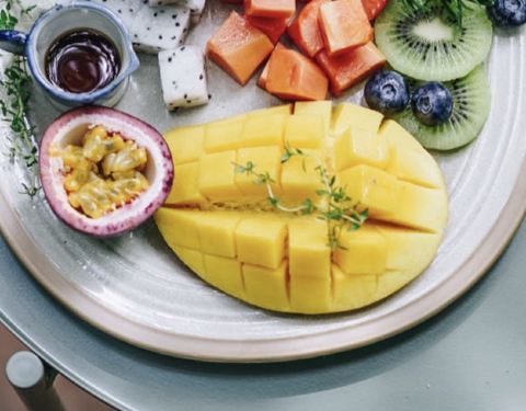 食物和饮品也是特别健康 白白的桌子配上合适的植物简直美炸了
