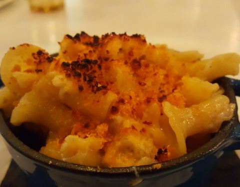 The Crab Mac & Cheese doesn't skimp on the crab meat! Made with gruyere, white cheddar, campanelle, & Old Bay herb crumb.