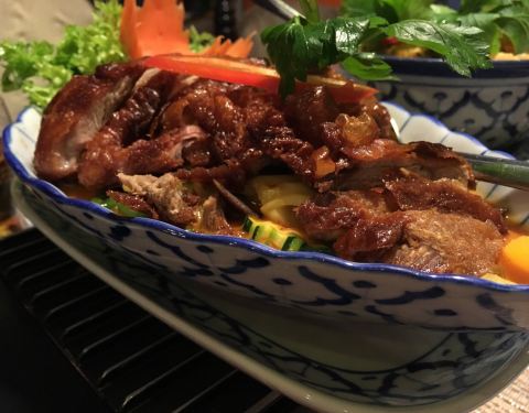 炸鸭红咖喱 鸭皮不够脆 毛没有除干净(虽然对这里的鸭子没有毛除干净这个期望,鸭肉太干偏老 咖喱第一口吃还不错 多品几口尝到苦味了不知道是某种香料煸久了还是怎样…