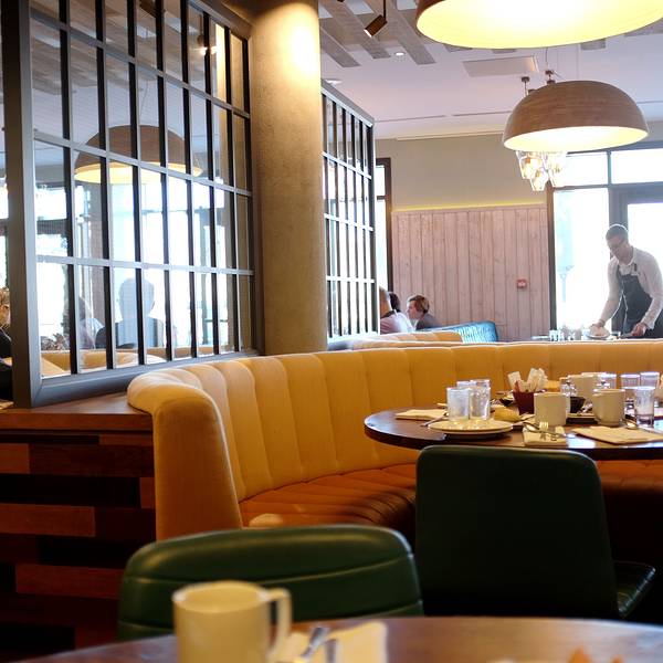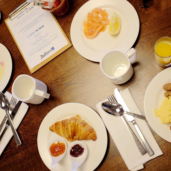 在马赛旧港附近 落地窗外就可以看到港口和海 装修很新的餐厅,白天也是咖啡厅 服务一般,早餐的种类不是很丰富 胜在位置很好,环境好 餐厅位置: 在马赛老港,对面就能看到很多船 旁边有百货商场 附近的广场周末非常热闹 餐厅在Radisson Blu酒店的0层地面层 虽然临街,但是招牌不是很显眼交通信息: 从尼斯自驾到马赛 按导航走,出高速后的路非常绕 有一个岔口一定要进隧道 走隧道才能到老港前这条大路上 交通路况相当复杂 打车过来可能更方便 如果在马赛旧港附近逛街,步行来是最佳的 餐厅环境: 餐厅的面积算是比较大的 靠窗位置有落地窗的景观位,室外有露天位置 座位分布是比较密集的 双人的小桌比较多,4人以上的圆桌是沙发的座位 早上快9点下来吃饭,餐厅里热闹的像菜市场 桌子上有客人吃完没有及时收拾的食物 靠窗的位置都没有了 用房卡占位置占了一个桌子早餐是自助的,可选的范围肯定不能跟国内比 在法国来说,算是达到平均线的在法国几天,每天几乎都是这老三样 这家的香肠算是比较好吃的了牛角包是必备的,这家的果酱也不错 有蓝莓和桃子口味的 果酱是在自助餐区域那自取的生的烟熏三文鱼味道太咸了 后来大概快10点了,三文鱼没有生的了 再上的三文鱼是熟的,有点老法国人很喜欢吃的切片面包奶酪加肉 三样放在一起味道还是很好的服务: 在法国几天,觉得这边服务都是比较随性的 服务员给人感觉并不是很友好 并且匆匆忙忙赶时间 客人非常多,草率的收拾桌子 对这家店印象并不是很好 主要是人太多了,服务也不是很好 食物的印象也很一般 但是最大的优势是,地段好 在最热闹的马赛旧港 出门步行非常方便 逛街累了过来坐坐是个不错的选择 专程过来是没有必要的