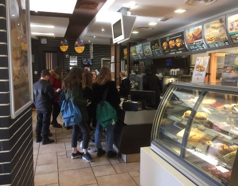 从景区出来就见到麦当奴,店外放了一些桌子,可以在戶外吃东西。他们的生意不错,可能价格够便宜,但上厕所有专人收钱,每次 0.5 欧元。其实东西也没什么特别,只是逛完景区后可以顺便歇一下。