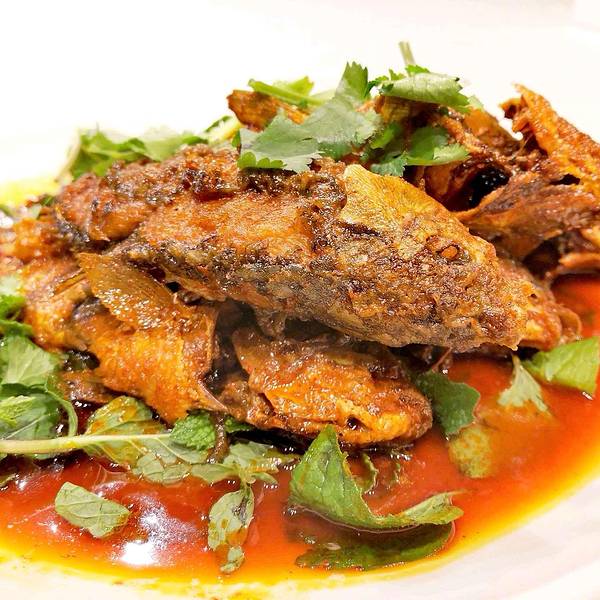 菜品以豆腐为特色,煎臭豆腐、豆腐圆子、蒸臭豆腐、豆花鱼等。煎臭豆腐,外表酥脆,内里软嫩,蘸点辣椒,爽口无比;蒸臭豆腐,外皮酥软,入口即化,拌