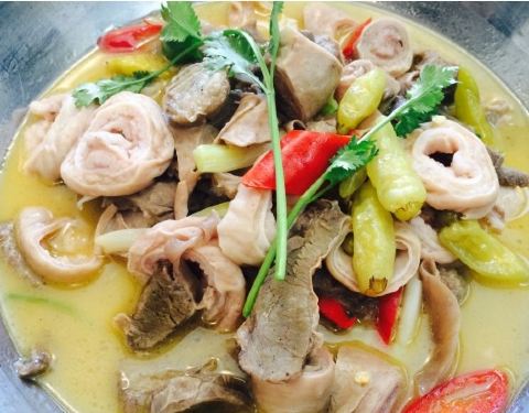 家船海鲜土菜馆位于塔头站溪头下站附近,一栋独立的小别墅餐厅,不仅有室外也有室内环境,共三层楼,一楼是前台海鲜池和小桌,而二楼三楼则是大桌及包厢,满足了不同来客量的需求,不过店内整体环境不如外在来得吸引眼球。 看了推荐菜,点了「当红鸡蟹舞」、「家传养生粥」、「金玉小象蚌」、「榴莲忘返」。 「当红鸡蟹舞」。一上桌店员就点火,火焰的诱惑,小歆是恨不得手伸着就直接抓起开吃。里面有膏蟹有鸡肉,伴随着酒的香气。 「家传养生粥」。竹筒装盛的,特别有Feel,里面加入了鱼翅蟹肉等,说是鱼翅感觉可能是粉丝?蟹肉虽然都是很碎很小,但是料还是不少,每口都能吃到。不过米煮得不够软烂,口感上不是很佳。 「金玉小象蚌」。颜值菜品,很是精致,汤头也挺不错的。就是刚上来的时候就只是温温的,虽然底下有小蜡烛加热,倒是一直也未热起来过,去过热一些就更好了。 「榴莲忘返」。好爱,底下满满全是榴莲果肉,上面铺上了芝士,汤勺一挖,芝士拉起一丝丝,入口榴莲果肉即化,香浓美味。