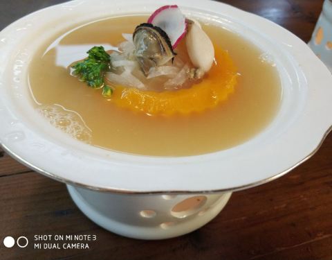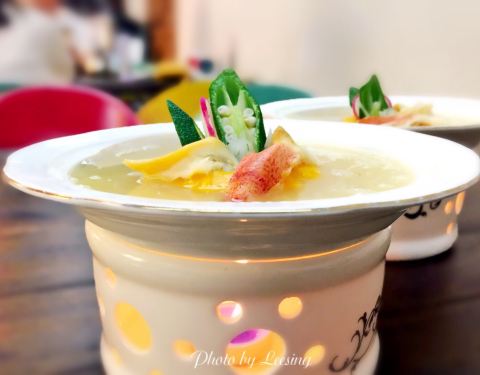 不过米煮得不够软烂,口感上不是很佳。颜值菜品,很是精致,汤头也挺不错的。 「家传养生粥」