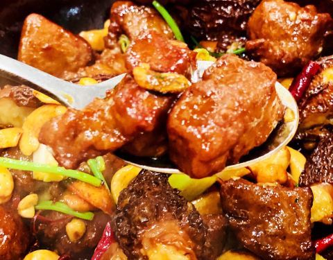 鲜味保留的很好,xo酱适量,配西葫芦片真是极好的 「宫爆虾球」一共6颗,虾球很大,肉质紧实,但...
