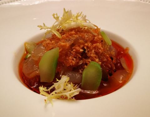 整体菜色相当不错,比较推荐醉蟹,蟹黄看着很诱人。预约后,服务生有致电确认,很贴心