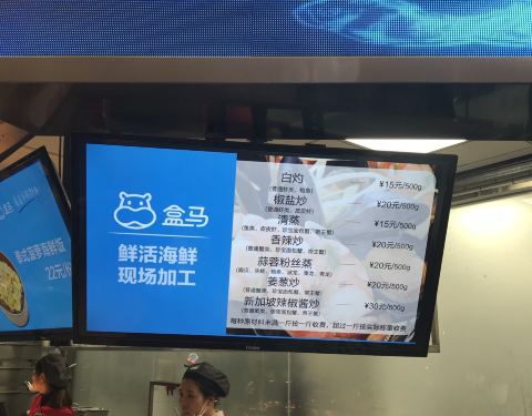 【环境】阿里亲生的盒马不愧是网红,开到哪火到哪,早有耳闻,到了北京肯定必须要去打卡。店铺在负楼层,整个装修都很可爱,盒马的logo随处可见,功能区分布科学,干净整洁,有海鲜区,有水果,也有零食,进口食...【环境】阿里亲生的盒马不愧是网红,开到哪火到哪,早有耳闻,到了北京肯定必须要去打卡。店铺在负楼层,整个装修都很可爱,盒马的logo随处可见,功能区分布科学,干净整洁,有海鲜区,有水果,也有零食,进口食品,还卖贡茶的和原麦山丘!当然最主要的是有厨房,吃饭区域,你买的都能现做现吃,而且味道超级赞! 最亮眼的海鲜区乍一看还以为是水族馆,当然你能看到的都能吃,划重点!比海鲜店、传统超市、生鲜市场线上线下价格都透明,便宜! 小龙虾、阿拉斯加帝王蟹、面包蟹、波士顿大龙虾个个都生龙活虎,每天从各个国家引进的的优质海鲜真的特别赞! 【服务】买完海鲜就可以排队交钱加工了,慕名而来的吃货朋友非常多。阿里的专业特色优势突显出来了!店内不收现金,只能下载app扫码交易,不定时还有优惠折扣! 付款的时候可以按照自己的口味指定各个海鲜的做法,蒜蓉粉丝蒸、香辣炒、椒盐炒都可以选择,比较推荐香辣炒。付款后就可以拿着小飞碟去座位上等着了,小飞碟震动就可以来取餐。 等待的时候不妨去逛一逛,买点饮料,顺便买点三文鱼刺身啥的,选择的种类多多,性价比没的话说! 【口味】 「波士顿龙虾」碰上优惠,必须下手来一只,做好之后拿到就感觉色香味俱全,我只能说真的好吃!肉质鲜嫩,料很足,一分价钱一分货,超值!难以形容~ 「面包蟹」虾跟蟹搭配在一起实在是有点奢侈,肉质口味没话说,处理的也干干净净,还有蟹黄,个大肉多!超赞! 【服务】盒马一站式的体验果然是阿里亲生的,买了东西可以现场app扫码添加购入车下单,3km里内30分钟配送到家,这个服务必须要点赞!马云还是厉害!超便捷!