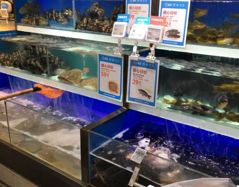 早就听说盒马鲜生与众不同的经营方式,一直没得着机会去尝试,而且据说人多的要等很久。来百子湾顺道来这儿看看,没想到下午4点多这个时段人很少,立即选购了喜爱海鲜去加工,不到半个小时就加工好了。食材新鲜,...