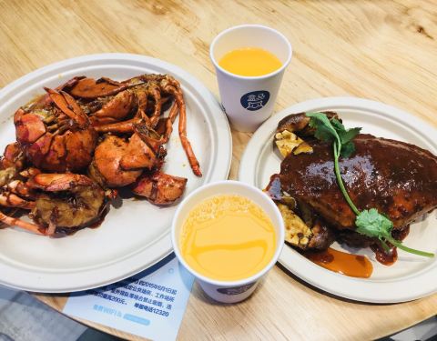 【环境】阿里亲生的盒马不愧是网红,开到哪火到哪,早有耳闻,到了北京肯定必须要去打卡。店铺在负楼层,整个装修都很可爱,盒马的logo随处可见,功能区分布科学,干净整洁,有海鲜区,有水果,也有零食,进口食品,还卖贡茶的和原麦山丘!当然最主要的是有厨房,吃饭区域,你买的都能现做现吃,而且味道超级赞! 最亮眼的海鲜区乍一看还以为是水族馆,当然你能看到的都能吃,划重点!比海鲜店、传统超市、生鲜市场线上线下价格都透明,便宜! 小龙虾、阿拉斯加帝王蟹、面包蟹、波士顿大龙虾个个都生龙活虎,每天从各个国家引进的的优质海鲜真的特别赞! 【服务】买完海鲜就可以排队交钱加工了,慕名而来的吃货朋友非常多。阿里的专业特色优势突显出来了!店内不收现金,只能下载app扫码交易,不定时还有优惠折扣! 付款的时候可以按照自己的口味指定各个海鲜的做法,蒜蓉粉丝蒸、香辣炒、椒盐炒都可以选择,比较推荐香辣炒。付款后就可以拿着小飞碟去座位上等着了,小飞碟震动就可以来取餐。 等待的时候不妨去逛一逛,买点饮料,顺便买点三文鱼刺身啥的,选择的种类多多,性价比没的话说! 【口味】 「波士顿龙虾」碰上优惠,必须下手来一只,做好之后拿到就感觉色香味俱全,我只能说真的好吃!肉质鲜嫩,料很足,一分价钱一分货,超值!难以形容~ 「面包蟹」虾跟蟹搭配在一起实在是有点奢侈,肉质口味没话说,处理的也干干净净,还有蟹黄,个大肉多!超赞! 【服务】盒马一站式的体验果然是阿里亲生的,买了东西可以现场app扫码添加购入车下单,3km里内30分钟配送到家,这个服务必须要点赞!马云还是厉害!超便捷!