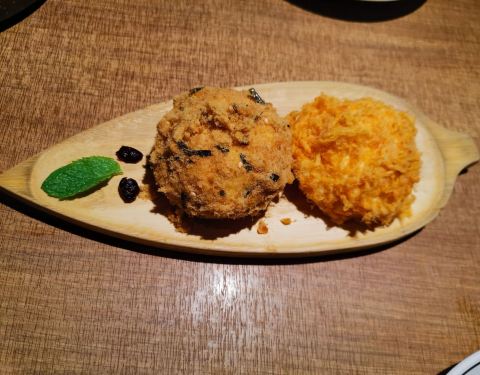 春节假期来广州游玩,天环广场里我们的酒店比较近。小炳胜属于创意菜吧,菜式真是不错,和之前吃的炳胜大不相同,春节怕人多,我们提早在网上订的位置,雪山奶露宝包、招牌窑鸡强烈推荐,招积茄子和上海的茄子烧法不同,广州特有的做法吧,外脆里嫩的。法国黑松露菜叶饭也可以尝试下。捞起三文鱼看上去很有食欲,但对于我这个不喜欢吃三文鱼的人来说,口味一般般哦。除了餐厅内的光线比较暗之外,服务态度很好,我坐在角落里被蚊虫叮了好几个包,和服务员反应情况后,给我拿来了止痒的药膏哦。