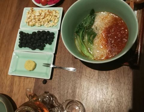 上次在隔壁吃饭,饭后往家走的时候路过这里,就对这里念念不忘,朋友把这件事记在心上,这就带我来拔草了~~ 虽然没有预约上室外的独立小包间,室内也很赞~隔音特别好,温度也好~~ 这家有别于其他吃茶的地方的是 他们家可以点香,我不懂香,但是看香炉很赞,香烟袅袅,意境很赞 朋友选的是04年的白茶,我们泡了至少4壶,颜色和味道还是没有什么太大的变化~很经泡 当中又一次服务员过来加水,发现他们是袋装水,问了下是安吉的竹根水,百度了一下,竹根水不是用竹子的根泡过的水,也不是从竹子根底下流出来的水。是从高山深箐流出来,不带井水囤积的土味,也没有自来水净化过的异味,纯净、甘甜、透心凉的水。 整体很满意,决定下次来吃面~10元一份,据说很好吃~~