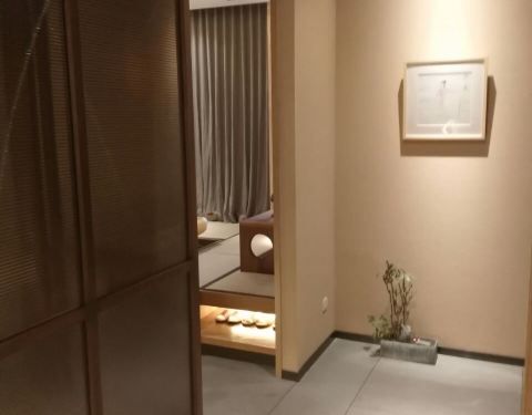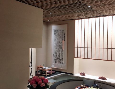 提前一天预约了包房。 门面很小一不小心就会错过。进了门别有洞天,透明的玻璃房别具一格,在花、鱼、水的衬托下很有诗意。 日式包房门口,备有拖鞋,方便客人,服务至上。 包房干净整洁,一书一茶,闲情雅致。 “遇到你要的时光”,对!这就是我想要的时光!!!