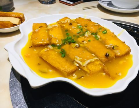 - 豆腐口感爽滑Q弹,据说是老板自己磨的,鲍汁浓郁,色泽金黄,下饭开胃