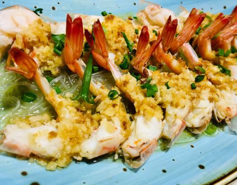 - 「销魂卤水乳鸽」的卤汁很好,乳鸽也十分入味,销魂不至于,但也指齿留香。「蒜茸开片虾」一般,虾肉不嫩