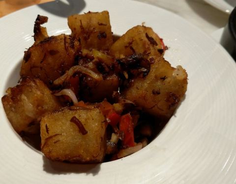 类似于广州酒店类型,陶陶居在西塔国金四层。 不愧是知名的老店,开餐前半小时就到了,已经排起了大队,还算不错,第一波最后一个用上了餐。 冰镇咕咾肉,绝对的镇店名菜,经过冰块的急冻,咕咾肉的外皮更加的脆,咬一口,都能听到声音。 嘟嘟生菜,做法细腻,感觉是把菜里的大干虾仁,在石锅中充分煸炒,然后勾芡,再把生菜放入炒制,菜脆,裹满了海鲜的香味,如此火候的把握,足见大厨功底。 烧鹅很肥嫩,一口豆腐也是绝对的佳品。 茶位统一6元一位。服务周到,也很热心。 俩人吃了这些,表示饱了。