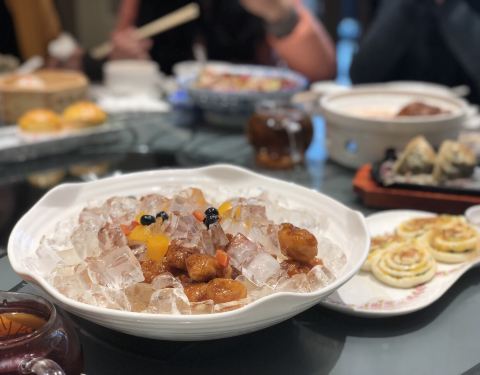 类似于广州酒店类型,陶陶居在西塔国金四层。 不愧是知名的老店,开餐前半小时就到了,已经排起了大队,还算不错,第一波最后一个用上了餐。 冰镇咕咾肉,绝对的镇店名菜,经过冰块的急冻,咕咾肉的外皮更加的脆...