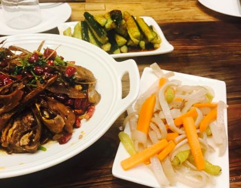 菜品都挺不错的,我们点的偏辣的比较多,总体菜品都比较咸,如果口淡的朋友记得让他们少放盐。馆子环境也不错,有时尚感,还有民谣歌手现场演唱,氛围还是十分不错的。缺点是没有厕所,但是这不是问题,去洗手间要去连通着的ktv,挺合适的。最想吐槽的就是她们的服务,不知道是服务生少的缘故还是什么,让服务员点菜还是挺痛快的,让把空盘子撤走,结果甩给我一句“现在没有时间”,然后就默默地去点菜上菜了,什么情况。服务还分优先级啊。好不容易过来撤盘子,是因为后厨的铁锅不多了,该收回去了。我滴天,你可以要服务费,把服务质量提上来,我也没说不给,这体验就太差了吧。