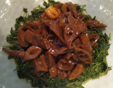 江浙菜,一看环境就是以前吃公款的,包间多。 它家菜都还不错,除了贵点儿没太大毛病。 清炒手剥河虾仁,功夫菜,光是剥个虾仁就费老劲了。这道菜食材新鲜,清炒更能体现虾仁本身的甜美,一上桌就被孩子们一抢而光。 野山菌炒安格斯牛肉粒,意外地好吃。牛肉特别嫩,虽然有点儿黑胡椒(我点菜的时候千叮咛万嘱咐,别加辣,可上来每道菜都没体现出这一点来),可还是被孩子们吃光了。 老鸡汤,在城里能吃到的比较好的土鸡了。鸡骨头特硬,中间空,一看就是散养的老鸡。 油焖春笋,下面垫着马兰头,是我最喜欢的风格。 要说原来主打商务,服务上不应该太差。可是它家服务员都缺乏一点儿灵气儿,态度倒不错。