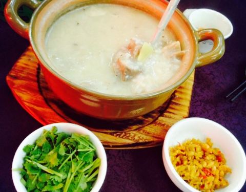 这是新开的店,本来昨天要去喝粥的,一看这家还不错,就进来了。整体还是不错的,两个人也不饿就点了一个豆腐,一个炒地瓜苗,阳春面,生煎包,还有桃花胶一碗。一上菜发现这家菜的分量挺大,但主食份量小,阳春面实在太小一碗,就多要了一碗。手撕豆腐的汤应该是鲫鱼汤,挺鲜。炒地瓜苗太多油了,吃到最后很腻口,剩了好多。生煎包是甜口的,可是味道还是不错的。桃花胶里头的桃胶不少,就是太甜了。