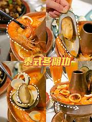泰式冬阴功 两只大青口、四只大虾、加上汤里面的蛤蜊、香菇,鱿鱼圈,材料很丰富,汤酸酸辣辣的很开口,味道挺正宗的!