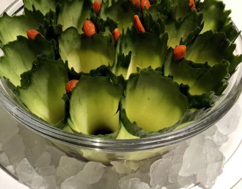 金奖奇脆元宝王 这道菜来头可厉害了!是被评为金奖的菜色!超大块的元宝底下是青芥末和糯米饭,不仅吃出了层次感,还很新奇有趣!
