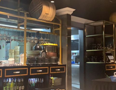 ♣️店内装修以黑、金色为主,黑色的墙壁、天花板、座椅,而墙上那个金色框框镜子、摆放餐具的金色架子在一片酷黑中显得特别亮眼!原来粤菜餐厅可以这么潮!