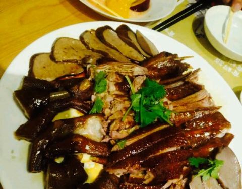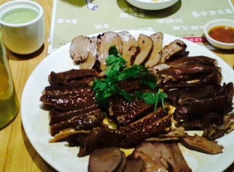 首先感谢网友攻略君抽中我。千里迢迢来体会,不负众望啊。店面位置很好找,招牌很醒目,店面装潢比较简约。一进店,店员都很热心的接待。验证很快,一坐下就先倒了水和上水果让我们稍等。水果很清新,很鲜美。这里主要是吃鹅为主,主角是鹅的大杂烩,各种东西的名字不是很叫得出,哈哈哈。不过重点还是味道很赞,分量超够的,食物弄得很好吃,两个人吃得停不下来。最后吃的得好饱,都吃不完。