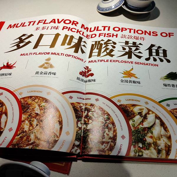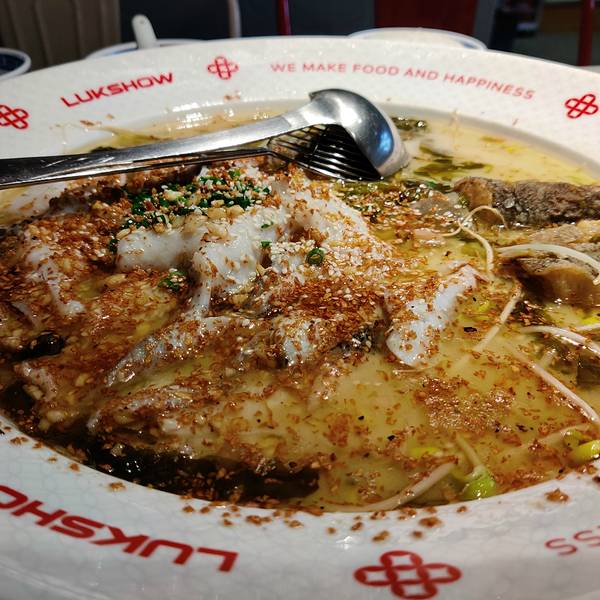 好久没吃禄鼎记了,最近看到出了好多新品,决定来试一试这间就在侨鑫二楼尽头的位置,还是那么多人等位,一进去是看到厨房还有小吃,然后才是大厅,很多座位,人太多了比较吵,坐在窗边还好一点服务还是那么好,反应快,热情,就是有点热情过头了,说菜上完说了几次新出几款酸菜鱼,有原来的招牌原味,新增黄金蒜香、摇滚麻椒、金汤黄椒、爆炸葱香,有不辣、微辣、超辣品种,终于多了选择还多了很多其它品种,出品保持得不错,价格适中,分量很足【黄金蒜香禄鼎记酸菜鱼】加豆芽,一上来就很浓蒜香味,基本是不辣的,有一点点微微辣味,比原味的淡很多,味道还是很赞,吃完也不会口渴,鱼肉多也嫩滑,一夹就碎,酸菜少一点,不够酸,粉丝很多而且入味够烂好吃【发财肥肠辣子鸡】很特别,是一大盆上来,然后倒在有个大盘子上,辣椒超多,鸡比较少,鸡肉炸得太过了,没有肉感肉味,不是很辣,偏咸,没有牛蛙好吃【高压浓汤豆腐白菜】比之前的娃娃菜汤浓一点,但味道还是偏淡,菜切得很薄很小,吃起来就没有那么多汁,分量挺大【红白】还是浓浓的炼奶香,冰粉加葡萄干,解腻解辣一流,清爽出品服务环境都不错,价格适中