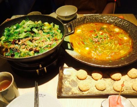 跟着同学来蹭吃蹭喝。【青菜牛肉】看评价都在说好吃,作为招牌菜于是第一个就点了。只是本人觉得油加的太多,到最后都是浮在上面的油,看着没什么胃口。实际上没有必要加这么多油吧,不然口感会更加好,卖相也会更胜一筹。只是好在分量还是比较多。【神仙酒】被图片吸引了,烟雾缭绕觉得很漂亮。可是,在我们问了服务员大盆多大以后,也只是简单回答了几句,最后两个人,强行喝了半盆快撑到。味道的话酒味还是很香的,比较有特色可以一点。其实可以让店员适当给点分量上的意见这样提高服务的品质。【荞粑粑】??????觉得这个最美味了。单吃带走荞麦的苦味,加上一点蜂蜜,正好中和了口味,所以很香。觉得吃着很健康。【锅贴土豆丝】我不喜欢这道菜。实在太油,加了吸油纸还是一层油,要么就在厨房再处理一下过一遍油,吸一下。吃完几口只觉得满嘴都是油光很不安逸,而且主要是也没有什么其他味道啊。还是不如点其他特色小吃,这个雷,我先踩了。【服务】服务小哥态度很好也很热心。