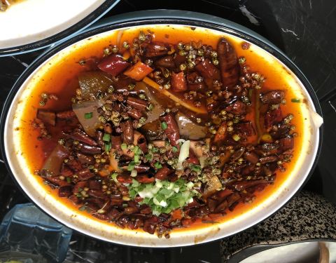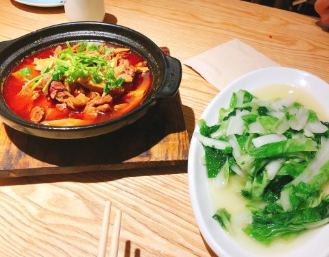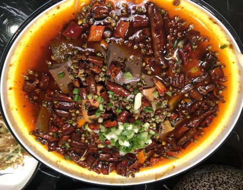 黑糖酱脆皮茄,超级好吃,挂的酱脆脆的甜甜的。金钱肚,软烂适中,但回味有点腥味,应该是原材料没处理干净。椒麻豆筋,不功不过。特色毛血旺,份量足,血味资格。莲白粉丝,莲白没有菜腥味,粉条有韧劲。山药排骨粥,有广州的粥品的感觉,内容也很丰富,排骨和山药都很多,我喝了两大碗。总之可以一试的餐馆。