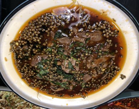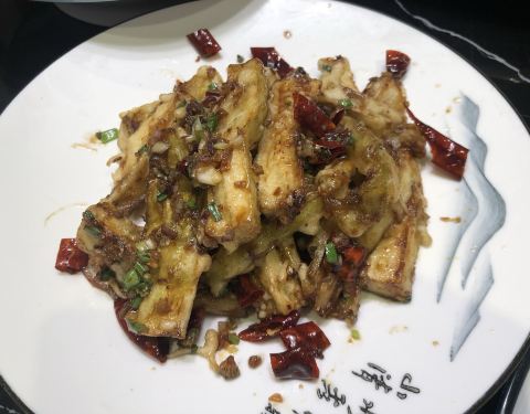 黑糖酱脆皮茄,超级好吃,挂的酱脆脆的甜甜的。总之可以一试的餐馆。椒麻豆筋,不功不过