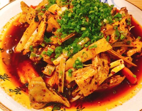 黑糖酱脆皮茄,超级好吃,挂的酱脆脆的甜甜的。金钱肚,软烂适中,但回味有点腥味,应该是原材料没处理干净。椒麻豆筋,不功不过。特色毛血旺,份量足,血味资格。莲白粉丝,莲白没有菜腥味,粉条有韧劲。山药排...