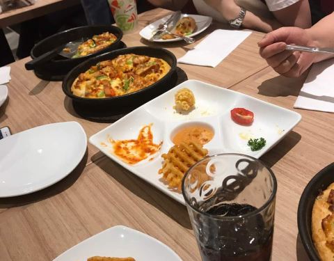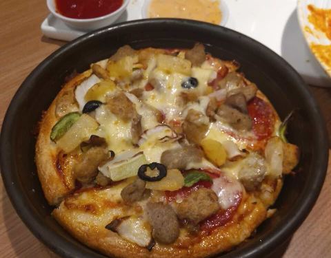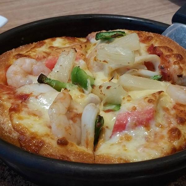 必胜客欢乐餐厅(熙地港店),位于西安市北郊凤城七路的熙地港购物中心,属于西安市北郊近几年新兴起的集购物、娱乐、餐饮等一体的活动广场。搭乘西安地铁二号线在B3出口出站,是去往熙地港最快捷的方式。当然,对于自驾车的客人,熙地港也有大型的地下停车场,停车费每小时仅2元,经济方便。这家必胜客餐厅,位于熙地港购物中心内东北侧的2F-3F,是一家跨楼层的餐厅。由于位于购物中心内,餐厅面积并不是很大。,我去的是位于3F的店铺,除中间的12人坐条形桌位,还设有一些2人/4人的小桌子,目测一共能容纳40人左右就餐。我去的时候正值下午,人不算太多,因此不需要等位。我选择了必胜客餐厅的下午茶套餐,用餐时间是14:00-17:00,可以选择从30元-45元价位不等的4款套餐,每款套餐都包含一份小吃(甜品)和一份指定饮品,饮品可以无限续杯,十分实惠。除此之外,我又单点了小份的铁盘披萨和水果沙拉,味道都很不错,一共消费132元,算是比较实惠的了。爱之丘提拉米苏,非常精致的小甜点美式炸薯条,等了好久才上桌。不过现炸的薯条,口感比KFC等快餐店强太多。水果沙拉,水果应该都是刚从冰箱取出来的,有点太冷清雅卡曼橘茶,用新鲜的卡曼橘和薄荷叶调制而成,属于冷饮,口感清凉。美中不足的是,店铺不知是营业员不够用还是太忙的缘故,上餐的速度很慢,最先点的下午茶套餐的薯条,到最后才上来,另外续杯饮料需要5分钟,速度也有待提高。