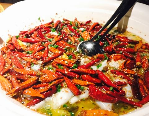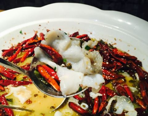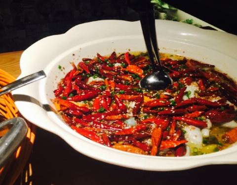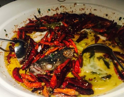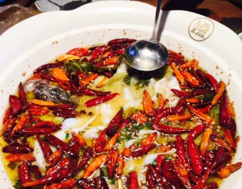 ...我是个几个四川的朋友一起来的,他们说这是老家的味道,哈哈,看来是挺正宗的哈,这个酸菜鱼非常的辣