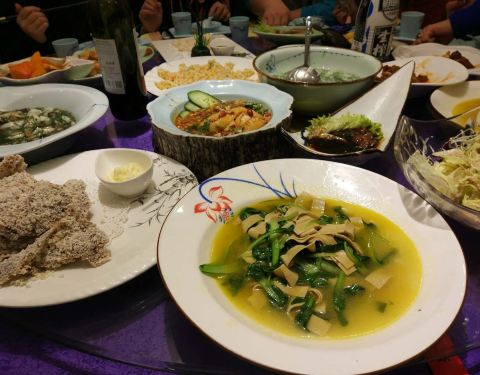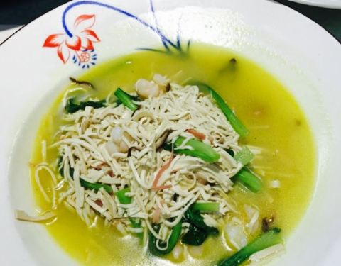 性价比还算高,价钱还算是比较实惠啦。口水鸡,甜甜酸酸,很好吃。酸菜鱼,量足,鱼肉很嫩。蛤蜊炖蛋口味清淡,就是蛤蜊少了些。炒豆苗和炒面都是老上海口味,赞的。生意不错,隔壁桌已经翻了三次,阿姨爷叔来吃的不少,看来是老百姓的大食堂呀。