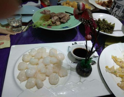 - ...椰丝味道比较喜爱,油爆虾个头超级大,虾的肉质也很嫩,酱牛肉,鸡毛菜炒百叶,肉丝炒面,椒盐龙头烤