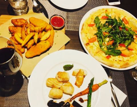 为了庆祝小伙伴回国,所以约了公司附近这家意大利餐厅,同时也是一大群盆友来拔草新店。位置,宁康园明星厨房的侧面,跟小蒸小酌并排,总的来说就在路边,很醒目也很好找。环境,??听说跟附近的海鲜是一个老板(。),所以两个店的摆设和装饰可以说很大气也很好看了,空间和位置宽敞。服务,人也不多,所以服务的很及时,上菜速度快,店员会推荐菜式。雷区自见,环境什么我确实认为很不错,然鹅??可能是口味原因,我没有踩到非常难吃的雷,也没有觉得到有让我特别开心的菜式_(,з)∠)_只能说有的地方有小惊喜,但总体没有非常吸引人。菜式。培根奶油玉米浓汤『。』,伙伴点的,我可能没记清菜名,这个汤作为前菜不错,汤很醇厚,最重要的是口感很分明,各种食材和香料的味道融合但又能清楚的尝出来。意式炸物拼盘『好吧这个名字我也有点记混』,这个无功无过_(,з)∠)_薯角脆,鳕鱼感觉裹粉上浆稍厚了一点点。鸡肉披萨和美味披萨,俩披萨写一起了,传统的意式披萨,薄饼皮的那种,是她们家意大利的厨师在大厅现烤的,嘎嘣脆。啊_(,з)∠)_不过我也就只好吃出饼皮嘎嘣脆了,原谅我披萨吃的少有点get不到正宗口味的点。牛排配橄榄油煎草菇,这个,讲真味道挺好,尤其是火候掌握的很好。她们家给我们推荐7成的时候其实我心里是没底的,没有想到他们家绝对是会煎牛排的,7成熟肉汁锁得完好,完全没有老,不管是用盐调的原味或者是佐酱汁都不错。唯一遗憾的是用的T骨的筋真多的够呛,吃到现在我的牙还觉得被筋崩了,☹️。肉酱千层面,尝了两口,还不错。面皮劲道没有煮过头,肉酱里番茄和奶酪融合的也不错,没有突兀的番茄酸味,白酱调的也挺顺口。但再吃,估计以个人口味就要觉得腻了。总结,??不便宜啊,今天还好是跟着金主霸霸们去混,不然同等价位下我可能更倾向拾葡之类的店,并且觉得这家菜品稍微单调了一点,而且没有特别戳我的菜。总之推荐想试试正宗意大利菜,想尝鲜,想环境好的盆友来吧。