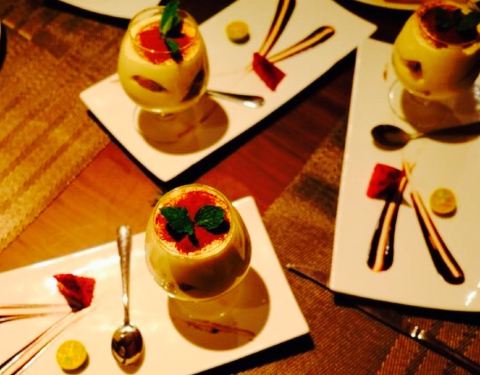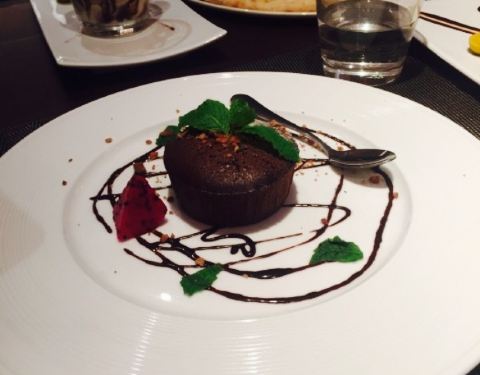 甜点点了提拉米苏和熔岩巧克力蛋糕,我吃的熔岩巧克力蛋糕,都是现烤的,吃的时候蛋糕还是热的,口感特别棒