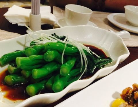 朋友住在那附近,上网搜搜就近就这里吧,酒店大门进去二楼中餐厅,大厅里七八张桌子,位置不大,就餐有限。其他是包房,包房感觉都比较气派,包房最低消费大概人均300左右,大厅就餐环境比较清幽,合适朋友小聚。再来说说菜品,椒盐排骨12元一根,味道一般,比较油,看个人喜欢了。琥珀鹅肝核桃比较好吃酥脆,鹅肝裹了东西,炸过像豆腐泡一样,细品有肝丁。芹菜鱿鱼家常,辣。脱骨鸭掌味道不错。西红柿鱼还行,小份4-5人也够吃,带汤汁,里面有泡椒。片皮鸭188一份,鸭架加20煮粥。粥,货真,片皮鸭没有吃到酥脆的皮,是包的鸭肉,也许不属于片皮鸭,名字不记得了。包好类似片皮鸭那种吃法。虾饺,大赞。晶莹剔透,鲜虾肉一坨坨的,就不形容了,点了两笼。36元一笼。榴莲酥,不敢恭维。一般般了,8元一个。点茶水好贵,都是200多一壶,没有,哈哈哈,冲虾饺,还是值得一去。