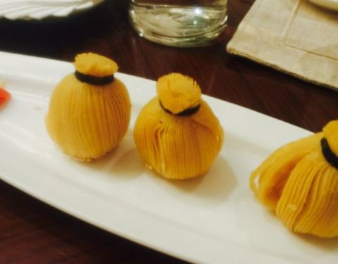 之前论坛里看到一篇帖子,于是内心种下了草。但是很少来汉阳,这次跑马,刚好来汉阳,跑完结束后,急迫的想安慰下自己??餐厅不大,最好预订,不然很可能没位置。周日中午是自助,可是都是服务生帮你端上来,服务质量也是五星级啊。一直以为港式都是小笼屉,分量少可以多吃几种,结果份量都好足,想一样吃半份(2个人)的心破灭了,不过我俩的战斗力也是杠杠的。最受欢迎的必须是虾饺,一个虾饺有4只大虾子,一人干掉了3笼。安虾咸水饺,是油炸的糯米皮饺子,里边是蘑菇虾米馅料,不是很对我的胃口。荷香糯米鸡,一笼2个,个头颇大,肥肉虾米和糯米,口感很好。蒜香蒸排骨,香滑软嫩。金蒜鱿鱼须,鱿鱼须个头很大,垫底的粉丝也很美味。金流沙包,是黑色的奶黄包,黑色的外表很带感。榴莲酥造型很美,但是榴莲味很淡,比较适合不太爱榴莲味的吃货们。古法马拉糕,一桌没有4个人就不要点了,一笼屉8角,虽然美味,但是太饱肚。