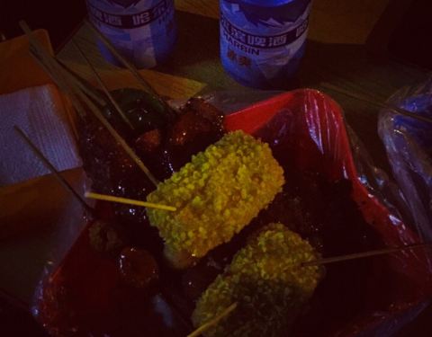 第一次吃这家的炸串,特地表扬一下吧,确实太美味了,最喜欢素串和鹌鹑蛋,炸土豆片真的惊艳到我了,非常美味哦,还怕不入味,只点了一串,点少了,下次一定多点几串土豆片,酥酥脆脆的,牛排和鸡排也好大,老板娘还赠送了一个橙汁饮料,搭配零度雪碧更好。