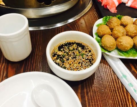 - 羊肉肉质特别好,下锅不散棒棒的,小料自助的可以调,最开心啦,往麻酱料里面放点炒过的孜然特别入味...