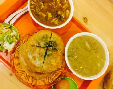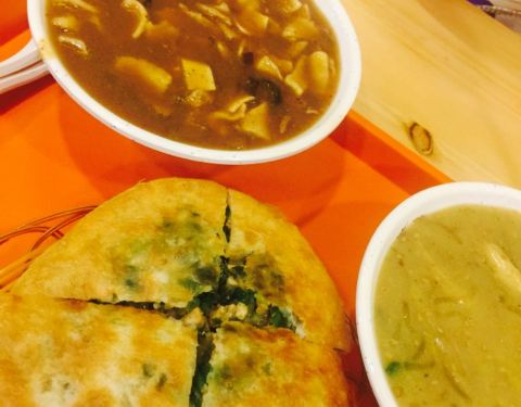 一直喜欢喝胡辣汤,最近西影路开了家门头很阔气的店,看着干净上档次。中午去的,人比较多,先办卡后刷卡点餐,排队去买油饼油馍头菜盒肉盒,每样都先来了点,全方位体验。葱油饼吃着外皮酥脆,饼心劲道有嚼劲,看着油亮亮的,很爽口。菜盒子韭菜鸡蛋的,还可以。牛肉粉条的很入味,香。包子中午没有了没吃到。油馍头炸的很酥,脆脆的,没有什么别的怪味,油腻的味。豆沫糊以前在其它地方吃过,挺不错,适合口味清淡点的人。逍遥镇派胡辣汤口味重,汤偏稀,很好喝,用料考究,还有很香的小香菇,就是一碗只吃到一片肉。整体上说,十分鲜美,肯定经常来。小菜品种太太少了,去的时候只有咸菜,应该加些蔬菜小菜等等的,光吃油腻的主食,配上素菜才体现饮食健康。
