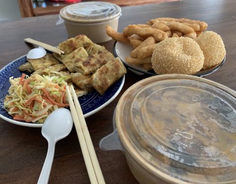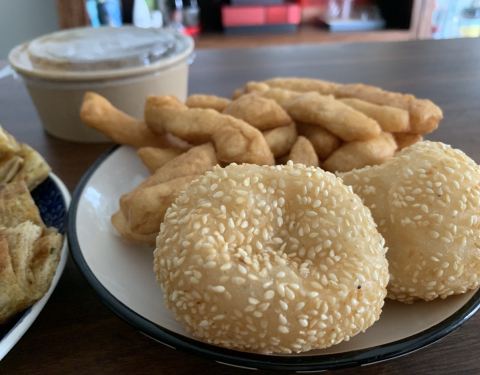 - 油条和饼送过来稍微有点软,不是很脆了,炸的芝麻团还挺好吃的,不错~