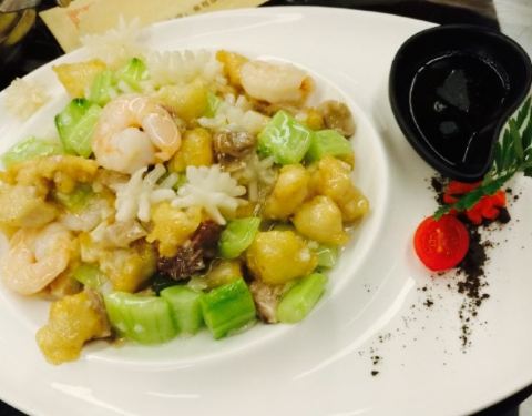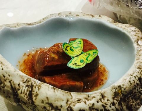 比较正宗传统天津菜,鼓楼这家新开业不久门脸不大,一楼有电梯直达二楼大厅,服务生很热心。菜品比较多点了芥末虾球摆盘特别美丽,虾也很大芥末调的也刚刚好但这种有点甜口的菜吃多会有一点点腻。黑蒜子牛粒传统天津菜牛肉粒块大酱味十足。还点了个凉拌鱿鱼具体名字不记得了味道也十分不错鱿鱼火候控制的很好,有机会还会再来品尝其他菜品。
