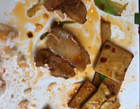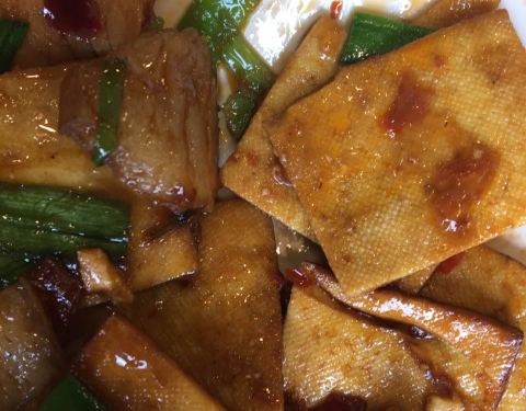 - 哇,9块钱一份的炒豆干居然翻出了两片肉!最后实在舍不得吃这两片肉,拍张照片纪念一下!太意外了