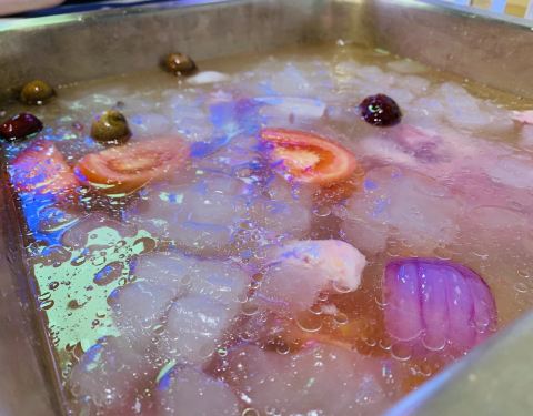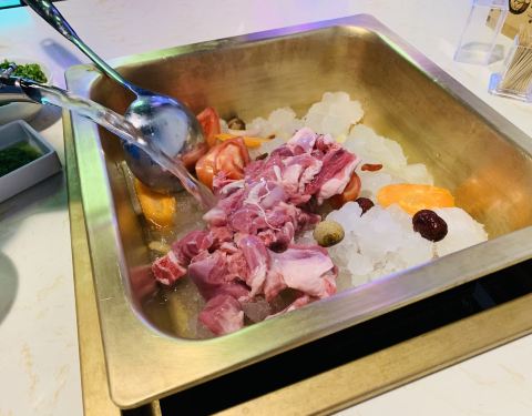 这家店是在滨江康康谷的,停车的话还是比较方便的,只是商家没有停车券的。第一次看到用冰块和水来煮羊肉的,而且全程都是现场制作的,羊肉味道很棒,吃起来感觉比较软嫩,口感也不错,再蘸一点调料吃味道更佳了,羊肉串的味道也比较好,只是后面加了份其他品种的味道就一般般了