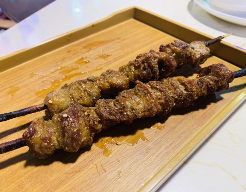 羊肉味道很棒,吃起来感觉比较软嫩,口感也不错,再蘸一点调料吃味道更佳了,羊肉串的味道也比较好,...